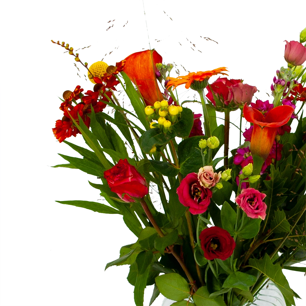 Met Boeket Hippe Herfst breng je gezelligheid en de herfst in huis. Het boeket bevat prachtige bloemen met herfst tinten. Verwen jezelf of breng bij iemand anders een lach op het gezicht! * Exclusief accessoires en vaas