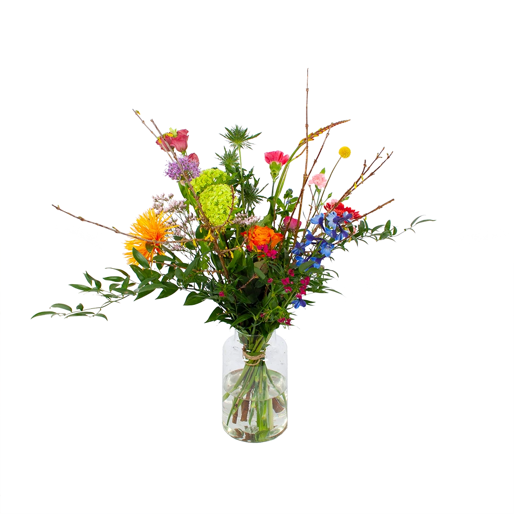 Met Boeket Kleurrijk verrassing breng je de gezelligheid in huis! Geniet van de verste en mooiste bloemen en fleur je huis op! Altijd vers van de kweker! Verwen jezelf of verras iemand anders met een prachtig boeket. *Exclusief accessoires en vaas.