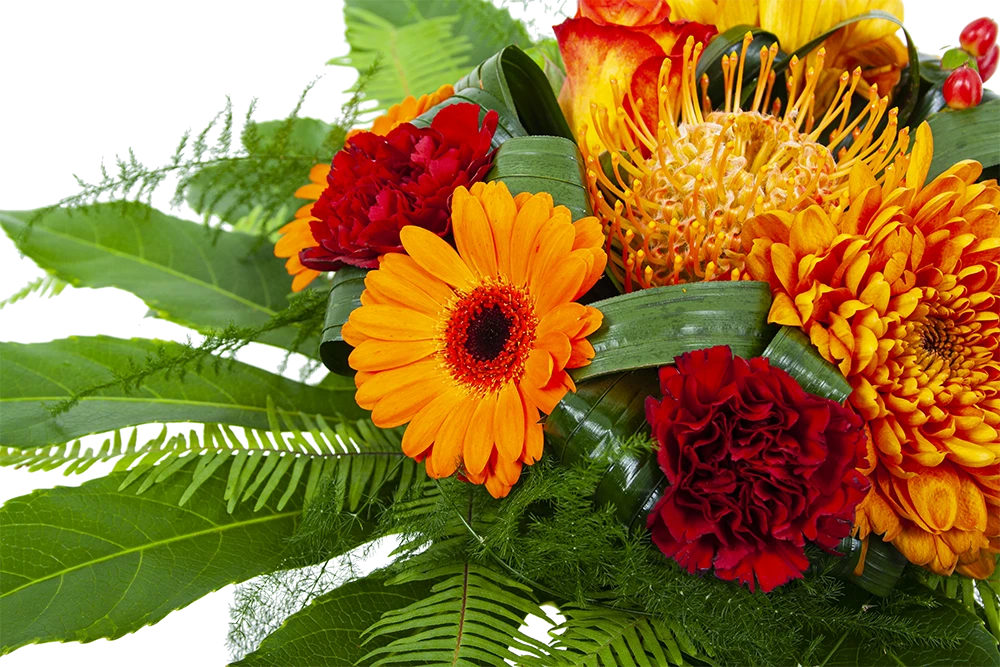 De combinatie van oranje en rode bloemen geven het bladboeket een gezellige en chique uitstaling. Een boeket dat in vrijwel elk interieur past. Bovendien geschikt voor verschillende gelegenheden. Feliciteer, bedankt of verstuur zomaar dit prachtige handgebonden boeket en verras de ontvanger! * Exclusief accessoires en vaas