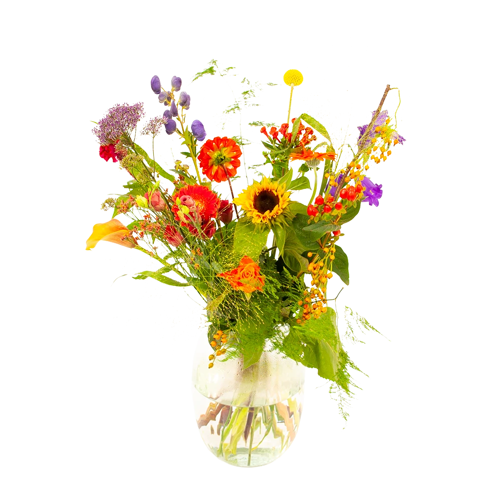 Met Boeket Plukgeluk breng je een prachtig boeket met prachtige tinten in huis! Verwen jezelf met mooie bloemen of verras iemand anders! *Exclusief accessoires en vaas.