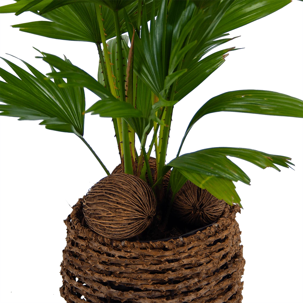 Livistona Rotundifolia In Gevlochten Caryota Pot – Chinese Schermpalm – P19 H50 – Kamerplant